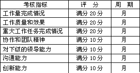 某公司自己设计了一套管理人员的考核表格(见下表),但在实施过程中却发现这套表格从上至下都在走过场。 表中的指标可以分为两类:一类是与岗位工作直接相关的“硬”指标,如表中前三项,衡量员工的工作结果,我们称为“KPI”(关键业绩指标);另一类是反映被考核对象个人能力的“软”指标,如表中后四项,衡量员工的工作行为,我们称为“资质指标”。