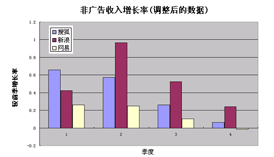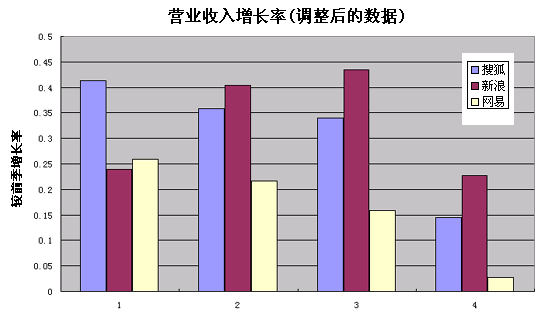 好在跟风也能存活,随着三大业务的开展,纳斯达克为搜狐送来一剂良药:资本。三季可转换债券的招募加上高启的股价为搜狐准备了厚实的资本实力。既然在自我开创业务上缺乏建树,那么并购成为一个退而求其次的合理选择。 但搜狐自己的历史并不能给并购一个好的理由。三年前纳市圈钱后火速购入的 ChinaRen 被行业观察斥为一大败笔,年前与搜房网的合作不欢而散;与其他资产的融合和管理并不容易。 给予搜狐勇气的唯一近鉴,相信来自新浪并购讯龙。 今年一月,新浪收购讯龙,以强力补充其短信业务软肋。数据显示,讯龙的并入不仅在规模上增强了新浪,而且资源的整和也为新浪的扩张带来了效率。 结合图1-3,新浪的广告增长和搜狐网易保持同步,所以体现在总营业收入(图1)上的变动主要是源自非广告收入的变动。对于总收入和非广告收入,2002年4季时,新浪的增长幅度低于搜狐,但从2003年始,新浪的增长幅度就明显快于搜狐和网易,营业收入的绝对规模也逐渐拉开距离。而发生在2003年1月的重量级事件即新浪购并讯龙。 据析,讯龙主要集中于线下短信服务,而新浪原有短信业务重在网络短信,所以讯龙业务仍是相对独立运作,只是营收等财务数据加入新浪主体。 这种模式给了张朝阳的并购抉择以充足借鉴。搜狐COO古永锵宣称,“并购后的两网站将进行独立运营和核算,原17173.com 和focus.cn负责人蔡宗建和龚宇将继续留任该业务总监和总经理。” 而为什么独立运作,也是部分源于对 ChinaRen.com运作中的教训,搜狐称:"为增大sohu.com的流量,我们在搜狐页面只保留校友录的连接而不怎么宣传ChinaRen.com;但网民的习惯表现出强大的惯性,仍有大量用户从 ChinaRen.com进入校友录。"