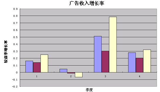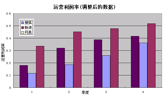 对于新浪,年前并购讯龙短信业务一路高歌,甚至在第三季首次超过网易;目前正在全力补救其长久低迷的网络游戏业务;而凭借其最强综合实力为背景,新浪可以先是关注,而等到新市场或新模式被开拓者证明可行之后随时进入。对于短信和网游,新浪都是如法炮制。短信果然出了头,可惜网游却因慢了半拍至今翻不了身。 网易则始终保持锐意开拓者的姿态。在短信和网络游戏上的先知先觉,促成了网易今日在纳斯达克领跑者的地位。同时,网易泡泡作为即时通信市场的棋子,不断拉近着和QQ之间的距离。现在,网易又在新闻内容上进行反攻,一心一意要把"博客"形式做成门户新闻的典范。思路和风格,都可圈可点。 反观搜狐,则明显缺乏明晰的思路。早先张朝阳喊着要在浏览量上超越新浪成为老大,不过现在却窘迫地被网易领先。从内容门户,短信,网游,到一些新兴的业务领域,搜狐不仅没能掌住先机,也总是不能走出自己的一套思路。今年三季财报显示,搜狐的营收规模落后新浪约30%,而营业利润率则明显弱于网易(如图5利润率)。