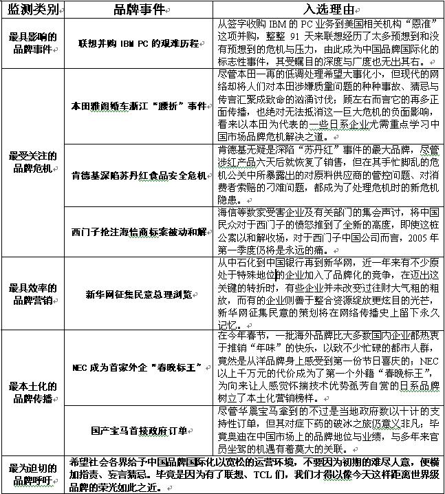 | 大品牌的恩恩怨怨——2005年第一季度品牌监测报告 | |||||
