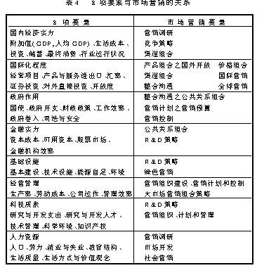 世界竞争力或称综合国力已经成为衡量一国实力的重要指标。我国改革开放以来,尤其是在“八届人大”政府工作报告中强调了市场营销在国企改革中的作用和资产重组展开之后,我国在国际上的政治和经济地位不断提高,世界竞争力持续增强。本文根据IMD最新公布的世界竞争力资料,重点讨论了市场营销在国力提升中的作用,并对如何继续提升我国的世界竞争力提出了几点建议。 一、我国在世界竞争力排名中的地位 西方经济学家、台湾经济学家及美国国会(1985theReportofPresidentCommission)对世界竞争力都有过界定,其中多数是从厂商、产业发展或国家的角度去解释的。如波特(PorterM.E.1991)的价值链理论,唐宁(Dunning J.1988)的绩效理论,捷奎林(Jacuelyn)的长期趋势理论,马丁(Martin.1988)的出口增长率理论,高希均(1996)的心脑科技组合理论等,特别是波特在1990年提出的国家动态竞争优势钻石模型(Diamond Model)对世界竞争力做了形象的解释(见下图1)。总部设在瑞士的洛桑国际管理发展学院(IMD)和世界经济论坛(WEF)对竞争力的解释颇具权威性。IMD融合李嘉图(Ricardo)的比较利益理论,索罗(Solow)的成长估测理论和波特的动态竞争优势理论,定出8项比较国力的因子,对46个经济体的竞争力进行排名。WEF以一国人均GDP变动率所反映的该国持续经济发展率代表国家竞争力,另有8项指标评比49个国家的竞争力。两者实质上也主要是从市场角度评价世界竞争力的。本文正是以IMD和WEF的定义和排名为基础,讨论世界竞争力和市场营销在提升我国竞争力中的作用。 图1波特的竞争力钻石模型 (一)我国的世界竞争力 世界竞争力亦称综合国力,是指一经济体得以促使自身经济高速增长的能力(世界经济论坛定义),或指一经济体通过对资产/转化能力、吸引力/进取精神、全球化/本地化等关系进行整合,形成一种经济体制,创造附加值并增强国家财富的能力(洛桑国际管理发展学院定义)。两者分别采用155种(WEF)和250种(IMD)指标均合并为8项要素(见表1),将世界上46个主要经济体进行排列。 我国的世界竞争力现状如何呢?据1998年IMD世界竞争力排行表,我国名列第24(1997年列27位,见表2)。在8项要素(IMD)计分排名中,我国在国内经济要素中排名第5,比1997年提升了9位(原为14位),这是一个令人鼓舞的数字。据报道,1997年是我国改革开放以来形势最好的一年。其首要标志就是国民经济运行方式已经由“高增长、高通涨”转入“高增长、低通涨”的轨道。去年我国国内生产总值达到7万多亿,比1996年增长8.8%。国内市场繁荣,消费需求稳定增长,全社会消费品零售总额实际增长10.7%;去年我国对外贸易也获得稳定增长,利用外资继续扩大。进出口总额增幅较大,其中出口增幅高达20%,外贸顺差近400亿美元,外汇储备超过1400亿美元,外国直接投资年流入量列世界第二,发展中国家第一,因而国际化程度排名由去年的29位跃升为第20位;其他如政府管理列第5位,较去年提升1位,经营管理由去年的34位上升为30位,科技实力由去年的第20位升至第13位,人力资源也由去年的第31位升至第24位,基础设施排名与去年持平列第40位,8项要素中唯一排名下降的是金融实力,由1997年的第40位下落两位,列第42位(见表3)。 客观讲,我国在过去两年中由于采取了一系列国企改革措施,特别是资产重组等重大举措,在经济增长和企业竞争力方面有了长足的发展,特别是能在IMD和WEF列出在8项要素的7项中均呈提升状态,实在不易,这从总的方面肯定了我国经济的健康发展。但是,这种局面与我国在世界政治中的地位仍不大相称。 (二)市场营销在一国竞争力中的地位IMD和WEF列出的8项要素广义上讲都同市场营销有较为密切的关系(见表4)。市场营销理论是20年前传入我国的,在理论上可谓是起步晚,发展快。从初期的4P需求导向营销发展到现在的大市场,整合沟通之竞争导向营销。如果在实践中能够全面铺开哪怕仅仅是初期的营销理念,我国在国内经济发展、国际化程度、政府调控、金融市场、经营管理水准、基础设施建设、科技开发与传播和人力资源配置方面的局面会比现在好得多。无论是政府或企业、个人,只要充分掌握了市场营销理论,各项工作一定会开展得有条不紊,能充分考虑到各方面的因素,最大限度地利用手中有限的资源,以达到或实现利益或利润最大化。然而,实际情况并不大理想。下面一组宏观经济资料已经显示出我国经济的负面:城镇失业率3.14%(约580万人)、下岗职工1100万人、国企臃员2500万人、农村还有案可查5亿剩余劳动力,1997年底全国累积库存约3万亿人民币,其中非正常库存约13000亿,房地产有7000万平方米库存。一方面是经济持续稳定地增长,另一方面又存在上述问题,这说明我国经济运行机制中的非市场、非商业因素依然具有一定影响力;我国现存的经济结构、产业和企业结构所能提供的产品和服务显然不能适应一个开放的、竞争性的买方市场。据资料,不少企业和(政府)个人营销观念淡薄,整体营销意识模糊,在实践中常带有盲目性、随意性和片面性,甚至不正当竞争。同时,企业成分和地理位置的不同也使得我国各地区营销活动水平参差不齐,尤其是国有企业在改革浪潮中显得步履维艰,其主要原因之一便是没有将营销理论运用到实践中去。 国内经济发展中的这些现象特别是国有企业中存在的问题已经引起各方面的高度重视。中国共产党